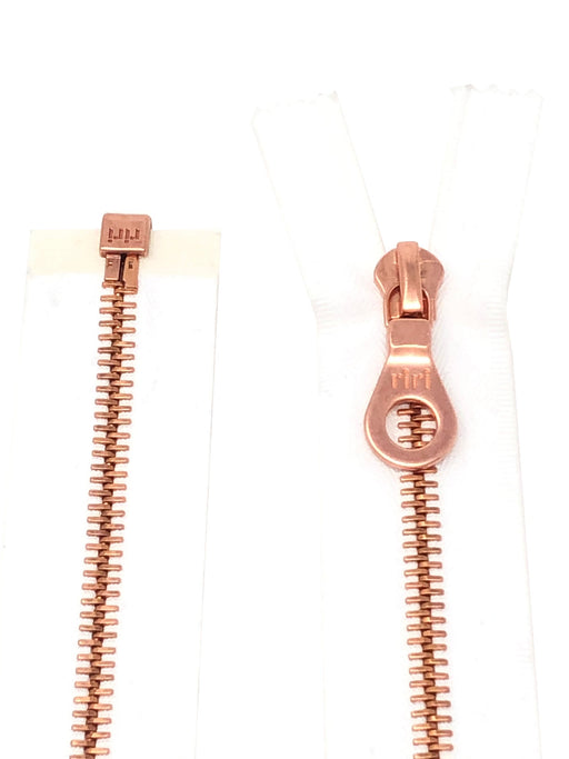 White Riri Jacket Zipper 6MM Rose Gold or Copper Finish Separating - Choose Length -