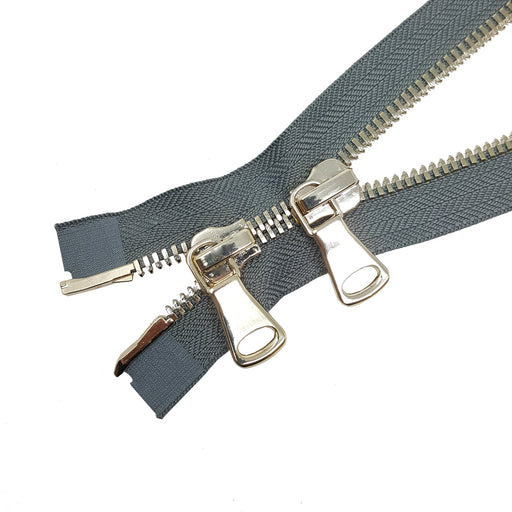 Zip-Up Glossy 8MM Teeth Two-Way Separating Open Bottom Zipper, Gray Tape Brass Teeth - Choose Length