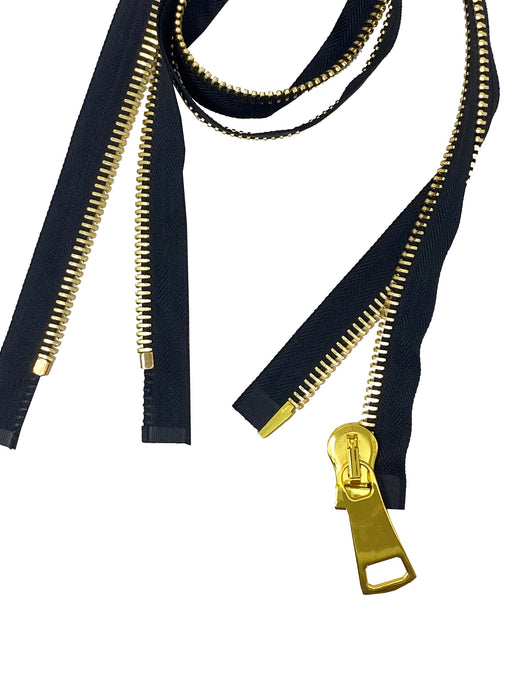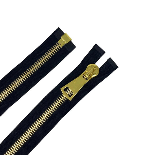 Zip Up Glossy 15MM One-Way Separating Open Bottom Zipper Black Tape Gold Teeth