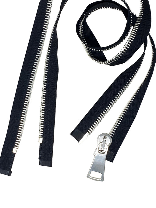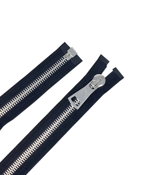 Zip Up Glossy 15MM One-Way Separating Open Bottom Zipper Black Tape Silver Teeth