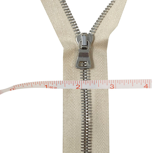 Glossy 5MM One-Way Separating Open Bottom Zipper, Beige/Silver |28 Inch Length