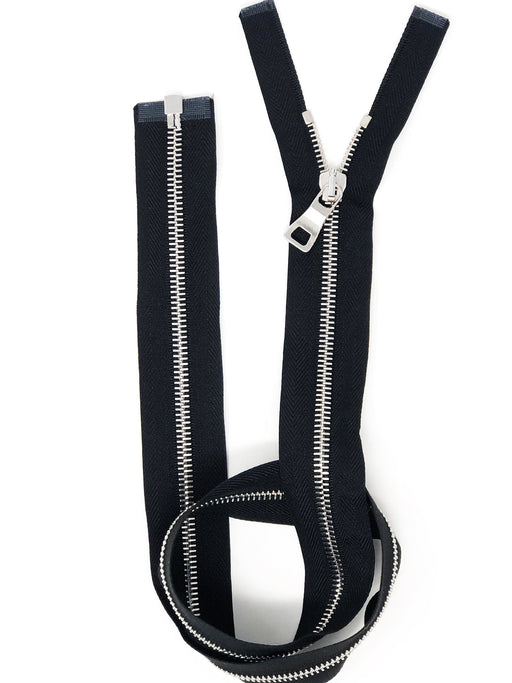 Glossy 8MM Two-Way Separating Open Bottom Zipper, Black/Silver | 36 Inch Length
