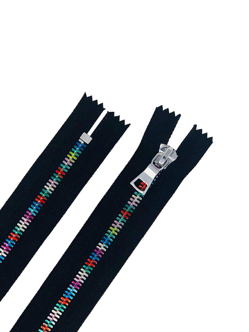 ZipUpZipperOriginal price $3.00 - Original price $3.00Original price$3.00$3.00 - $3.00Current price $3.00| /5" Rainbow Zipper Black Tape, Rainbow Teeth Closed Bottom, Non Separating *1 Zipper = 1 Quantity* Measurements: zipper length- 7" (12.7 cm) 28" ope...