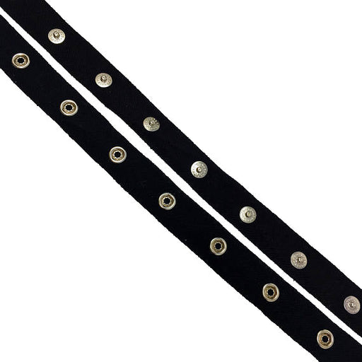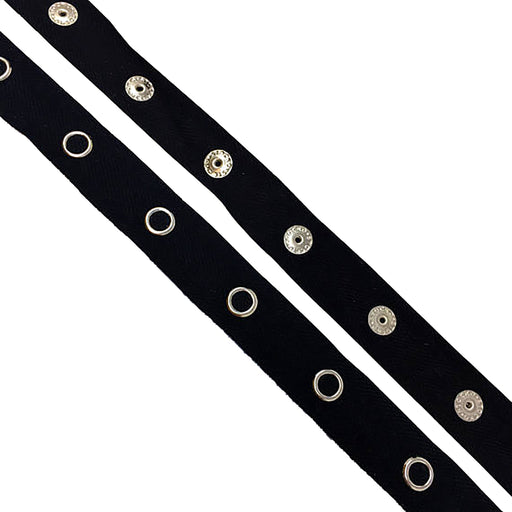 1/4 inch Wide Fastener 1 1/2 inch Gap Black / white Snap Tape Cotton Twill Silver By Yard